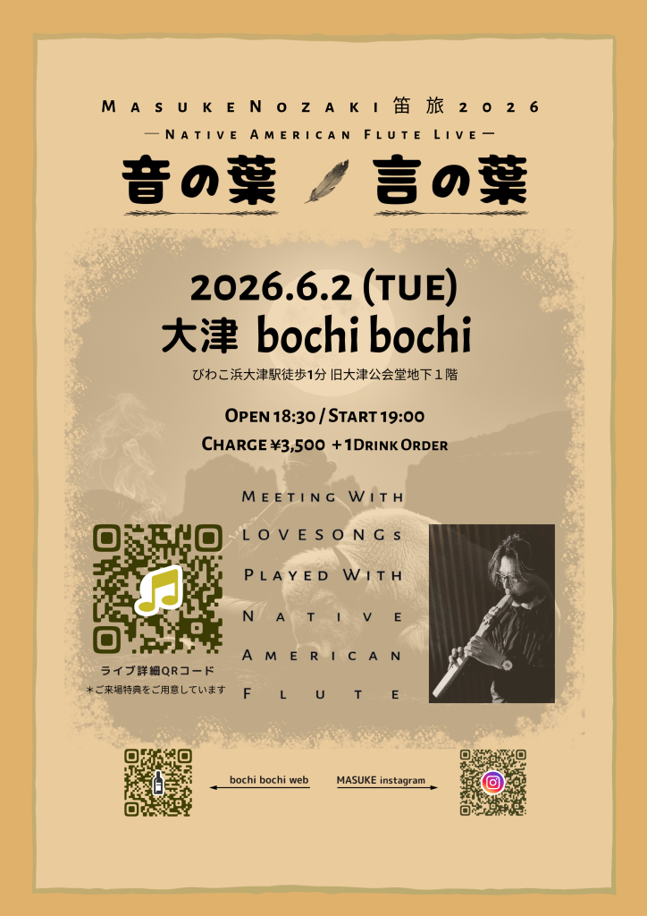 ”ネイティブアメリカンフルートの歌声と、北米各地でネイティブアメリカンから受け取ったメッセージを届けに笛旅へ!